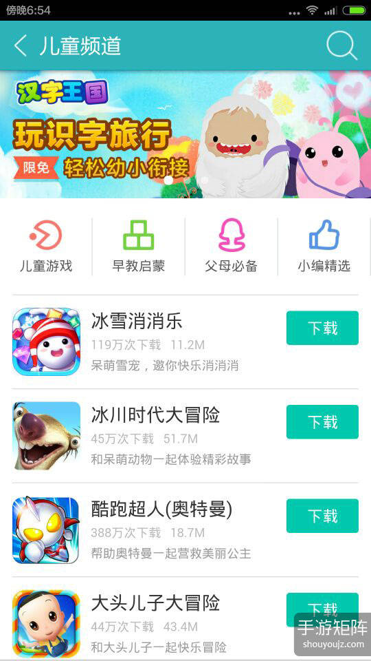 在国内,安卓平台的分发渠道比较复杂,再加上儿童手游在整个市场只占很小一部分,很多平台并没有专属的分类。比如在截稿日前,矩叔随机查看了360、百度多酷、九游、豌豆荚、小米游戏等多个渠道平台,只有360、小米游戏和豌豆荚推出了“儿童游戏”或“儿童益智”,其它渠道责还是笼统地将这一分类划到“休闲益智”中。